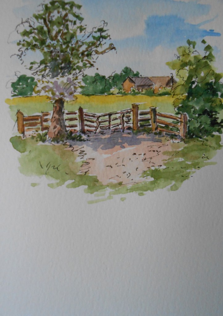 Took advantage of the early sun this morning and did some sketchbook things including this half page view. At least the mud around the gates is at last drying out in most places.