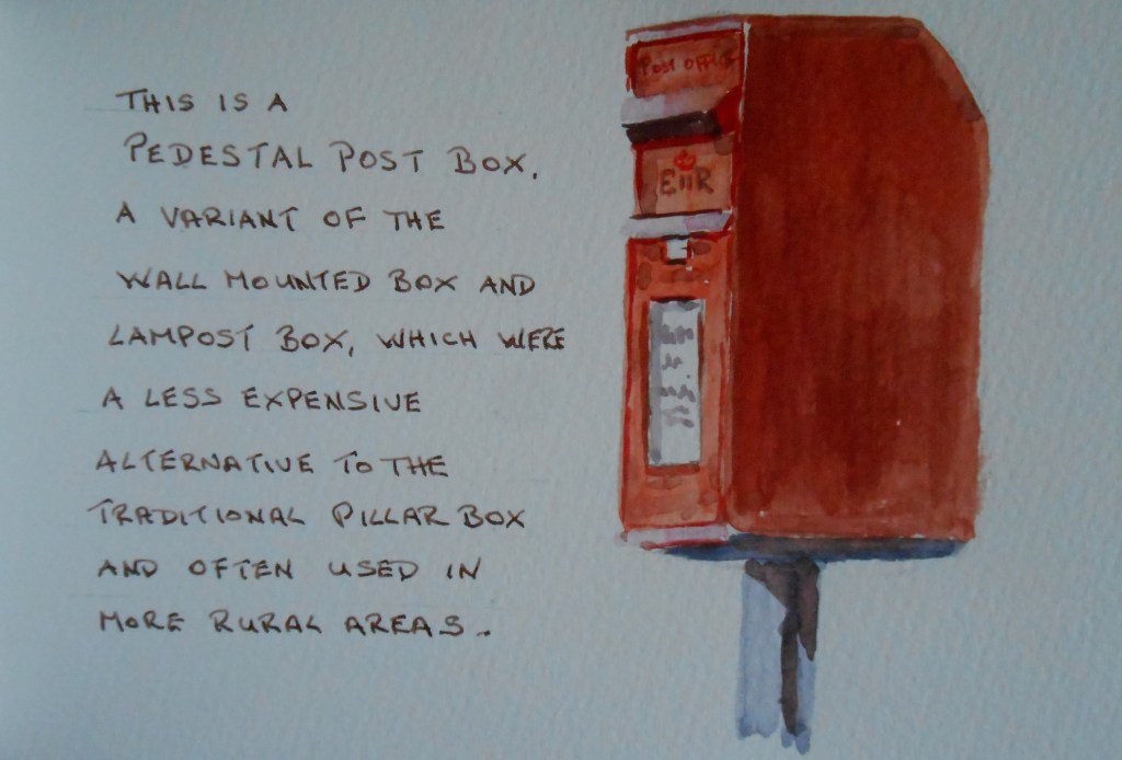 This Pedestal post box near me is a variant of the Wall box and Lamp post box, an early economy measure originally used in rural places where, presumably, the Post Office believed there were not enough letter writers to warrant a full size Pillar Box. This one is a fairly recent one as it carries the E11R cypher for Queen Elizabeth the Second.