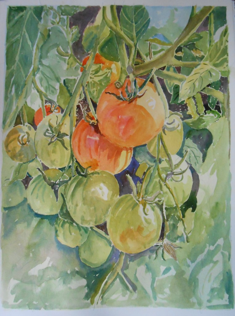 Red Anthurium,or, as it’s known around here, Kitchen counter plant, is something I’ve been meaning to sketch for a while, and finally, today, I managed to put it in my sketchbook while I grabbed a cup of tea.The bright red bracts called for a yellow, Cadmium Scarlet and some Permanent Rose, leaving some of the paper untouched for the shiny, waxy areas.As you’d expect from a perennial, it has been around for a long time, and hopefully it will be with us for many more years to come.
